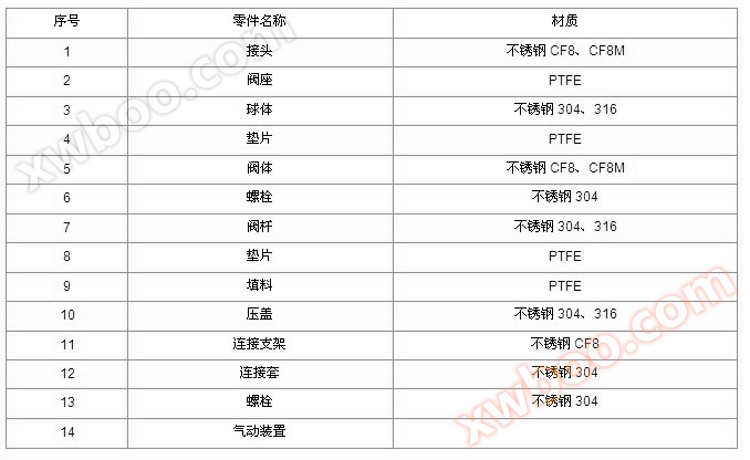 Hinweis: Die Materialien der Hauptteile und Dichtungsringe können auch nach den tatsächlichen Arbeitsbedingungen oder speziellen Anforderungen des Benutzers entworfen werden.