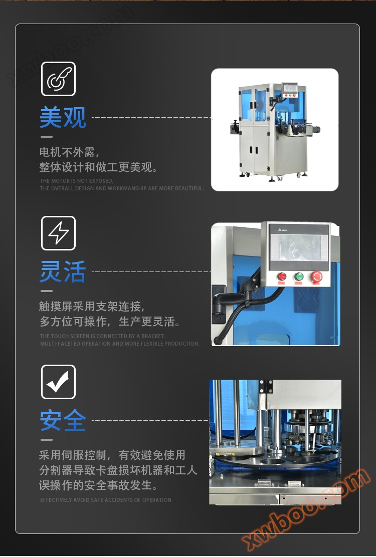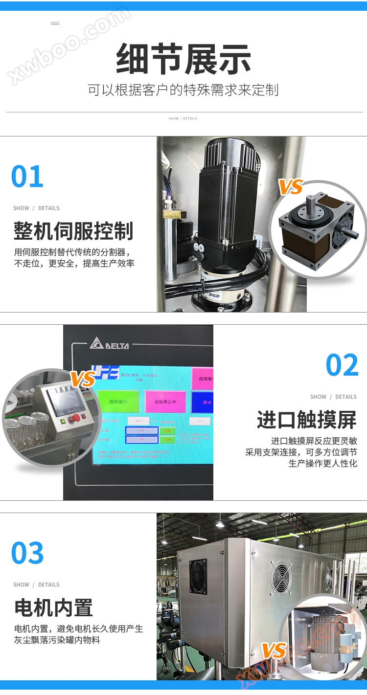 Die Servo-Steuerung der gesamten Maschine macht den Betrieb der Geräte sicherer, stabiler und intelligenter. Es gibt eine Tank, um die Platte zu starten; Drehgeschwindigkeit kann individuell eingestellt werden; Wenn der Karton erscheint, wird die Drehscheibe automatisch stillgelegt und nach einem Klick auf den Rücksatz kann der Fehler wieder aufgehoben werden; Wenn Fremdkörper an der Drehscheibe feststecken, hört die Drehscheibe automatisch auf, um Schäden an Geräten und Sicherheitsunfälle zu verhindern, die durch den menschlichen Fehler verursacht werden.Zwei Rollenräder mit insgesamt vier gleichzeitigen Dichtungen, um eine hohe Dichtung zu gewährleisten.